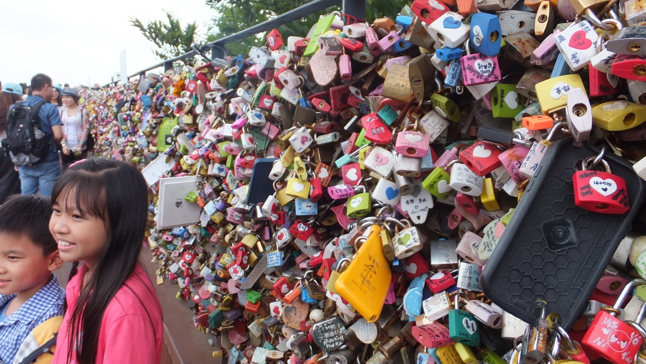 大半の人のお目当ては、「カップル達が永遠の愛を誓って」取り付けた南京錠。