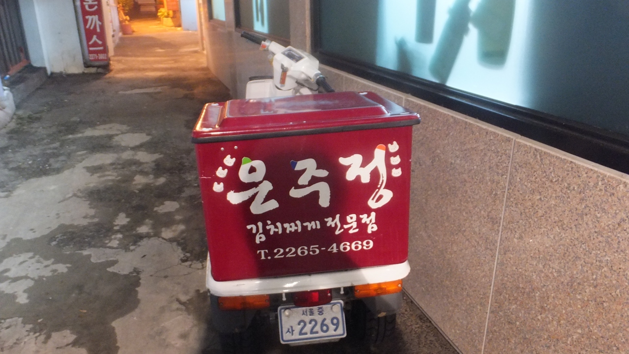 店に行くには、地下鉄「乙支路4街」駅4番出口を出て直進、清渓川に来たら右に折れ、川に沿って150?ほど直進します。
