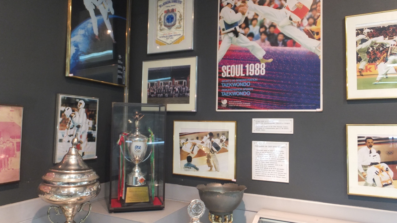 記念館は、世界唯一のテコンドー博物館として1991年に開館し、道着や防具などの装備から、オリンピックや世界選手権での優勝カップ・メダル、各種メディア資料などが集められています。
