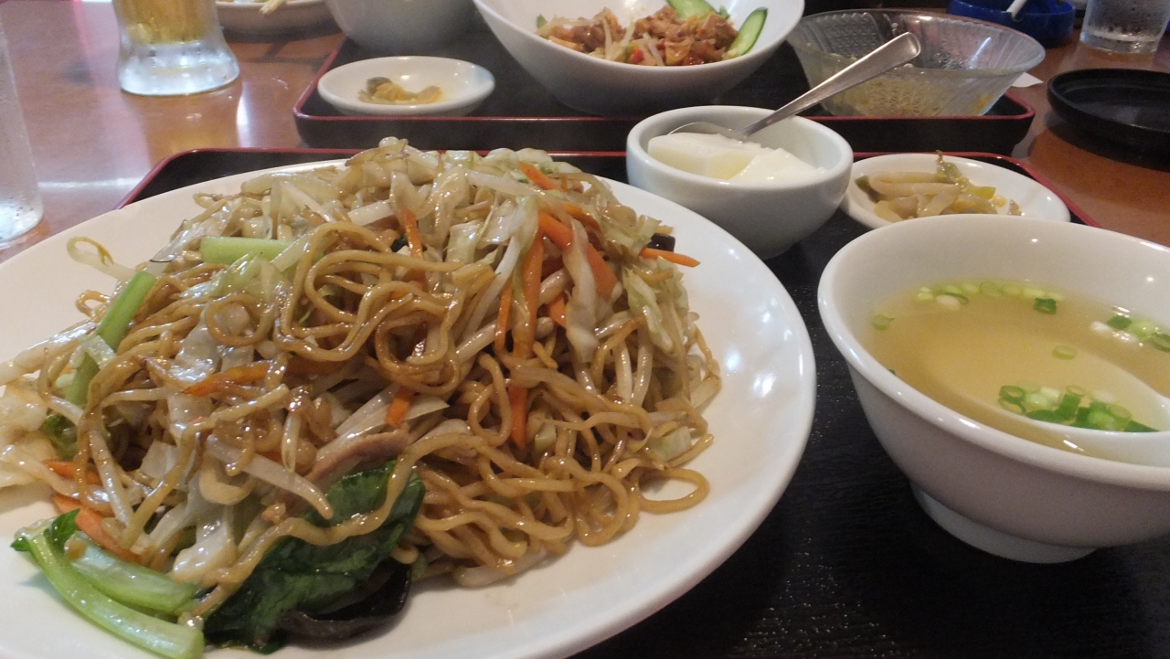 日替わり刀削麺650円、焼きそば家庭風800円、バンバンジーの辛味ソース定食550円。