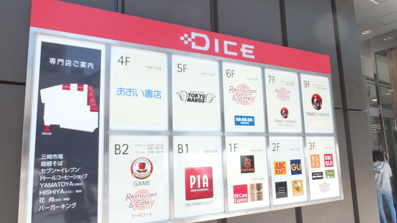 「TOHOシネマズ川崎」ほか、東急ハンズ、あおい書店、ユニクロ、ABCマート、TSUTAYA、パチンコ&スロット PIAなどのショップとレストランなどが入店していて、大体はここで用事が足ります。