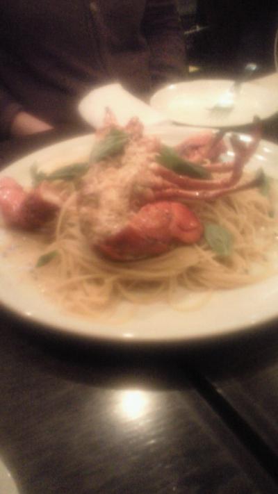 ロブスターが入るパスタが売りですが、従業員が「このロブスターを使わせていただきます」なんて水槽から一匹出して説明してくれるんですが、出てきたパスタは大皿に4人前ずつ盛られ、ロブスターはさっきの片身が入ってるだけ(笑)。