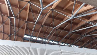 屋根は、地元の杉材で作られたアーチ状の大屋根が作られ、愛称は「くじらドーム」だとか。