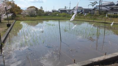 田植えの後、早乙女が周囲にいる男性の顔や手足に泥を塗ります。
