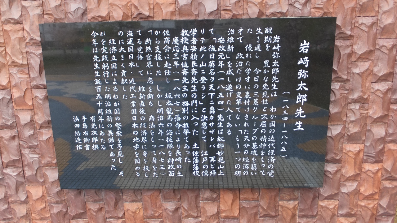 昭和60年、岩崎弥太郎生誕百五十年を記念して、安芸市が立案し、安芸商工会議所などが中心となって全国に募金活動を展開し、目標の3千万円を1年で達成し、建立しました。