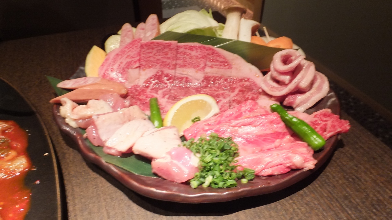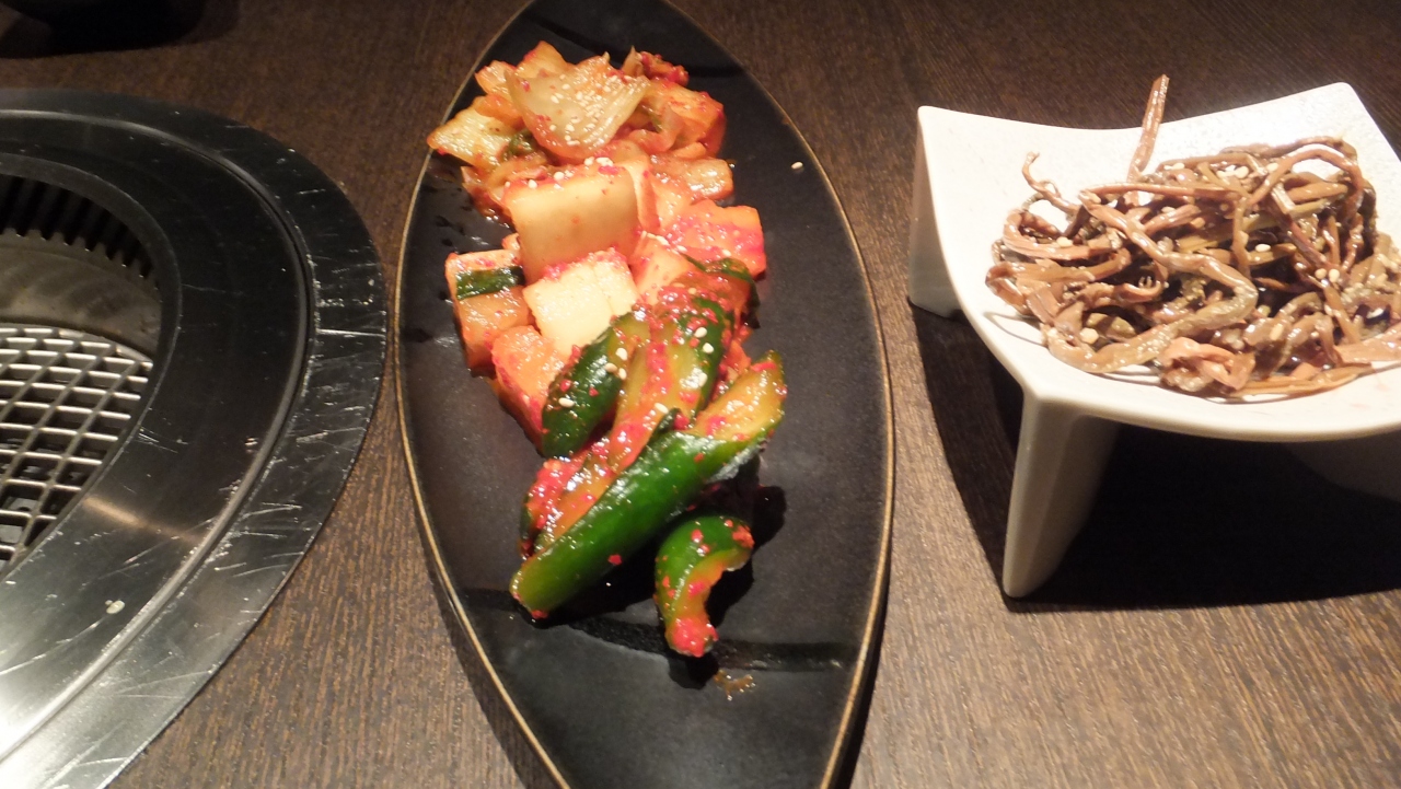 キムチの盛り合わせ(960円)、ゼンマイナムル(420円)、厳選焼肉セット(2~3人前用6,580円)などを注文。