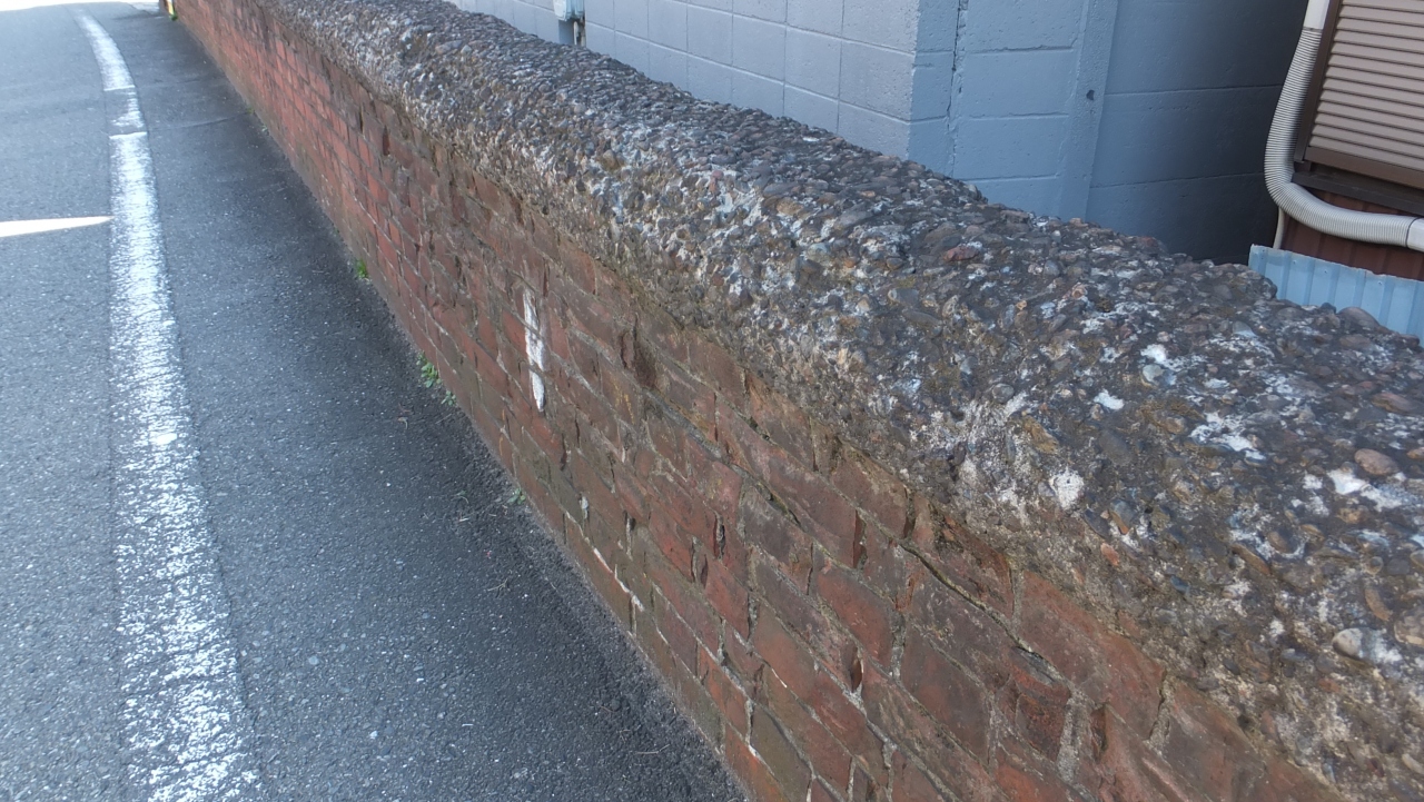 羽田の渡し跡付近の道路沿いに、昔のレンガ造りの堤防が残っています
