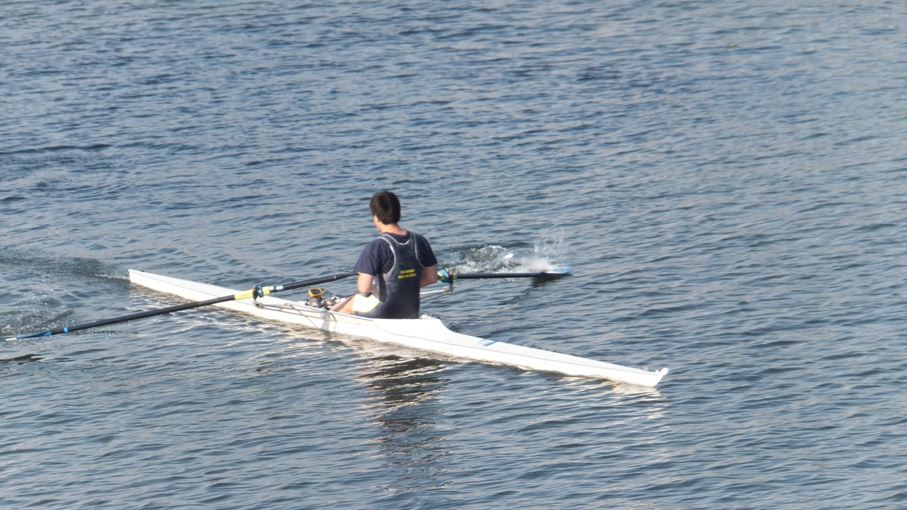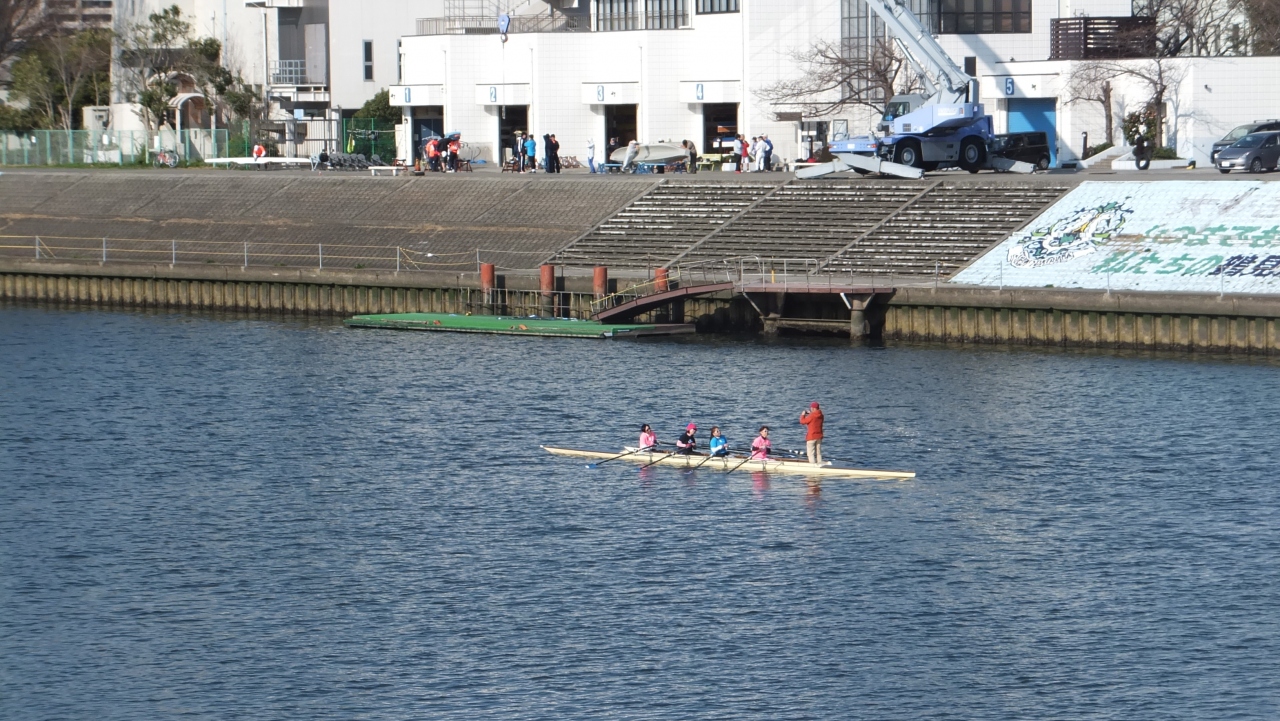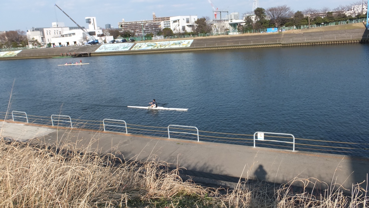 鶴見川を歩くと、一年中ボートを漕ぐ姿をみかけます。