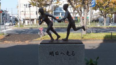 下り(九区から十区への中継所)側には、「明日へ走る」のブロンズ像があります。