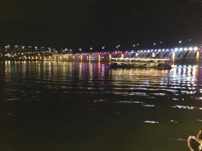 漢江には、21の橋があるそうですが、そのちょうど真ん中あたりの「盤浦大橋」では、4月~10月にかけて一日に数回、噴水ショーがあります。