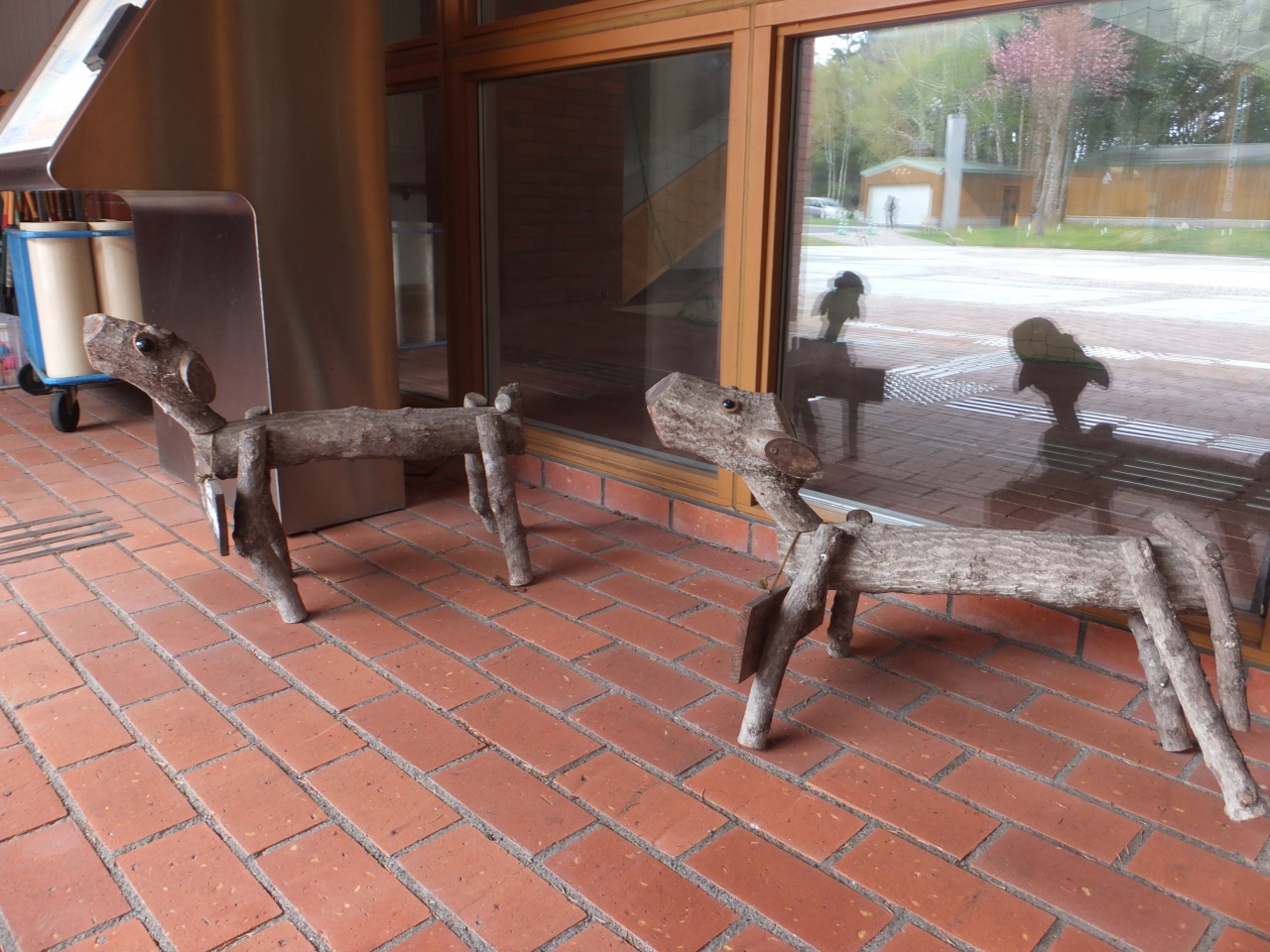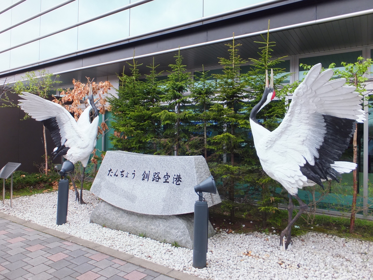 空港を出て、バス停前には、タンチョウ、ヒグマなどのオブジェがあります。