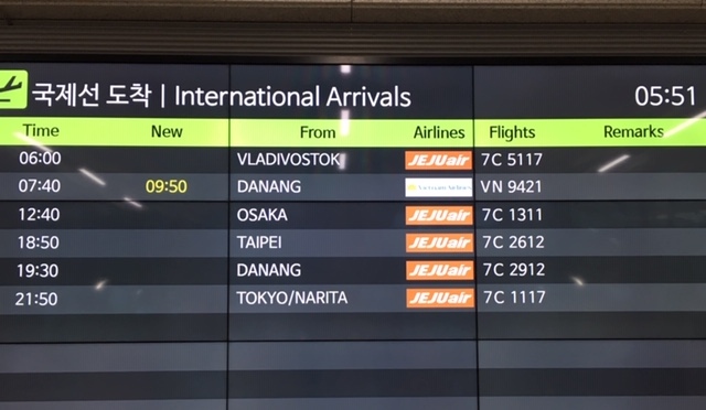 光州空港というのはあるけど、国際線は飛んでないらしい。調べるとチェジュ航空便が数本あるらしい。しかも、光州空港では無く務安空港・・・。