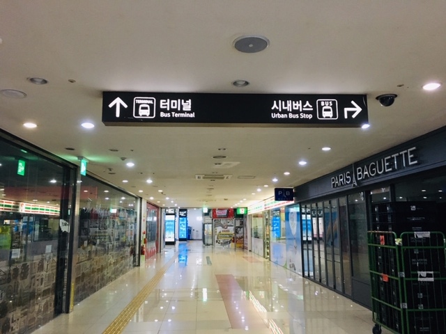 務安国際空港から光州行の高速バスはここに着きます。途中、高速道路と車の少ない田舎道をかなり飛ばしますので45~50分で着きます。