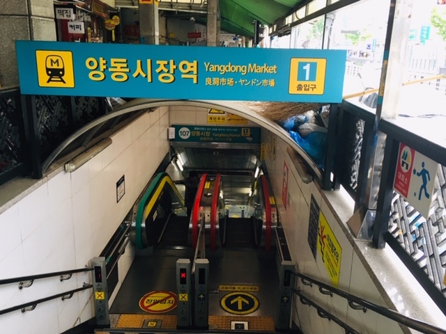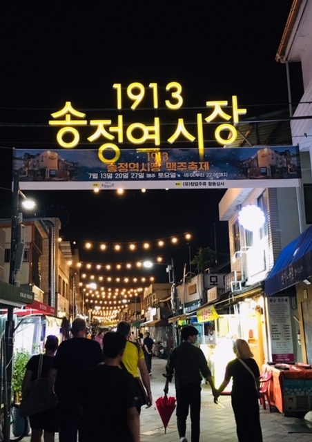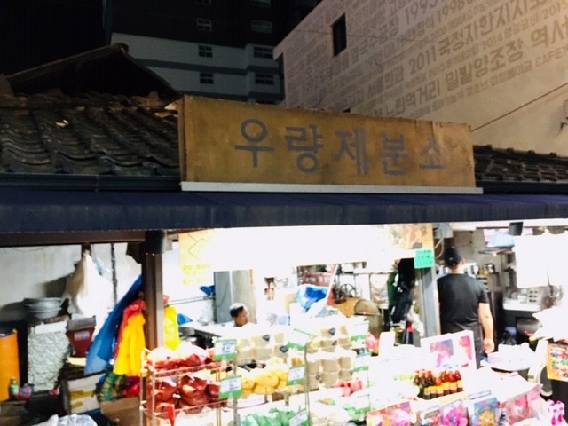 光州市地下鉄とKTXが連絡する松汀駅近くのレトロな市場です、夜は一際素敵です。