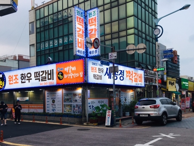 光州市地下鉄とKTXが連絡する「光州松汀」駅から歩いて5分くらいの通称トッカルビ通りにある人気店です。