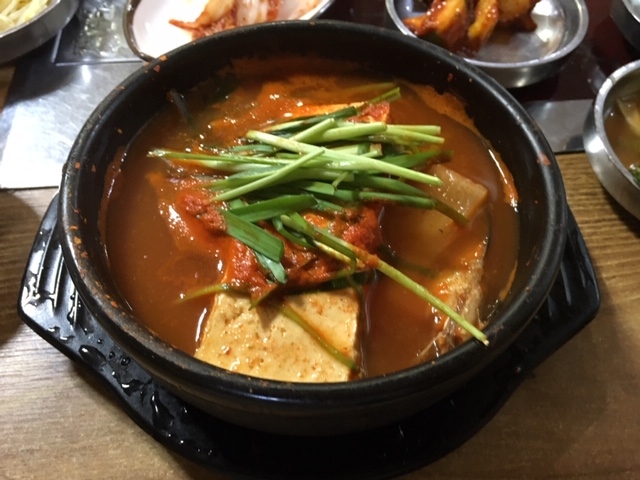 スケトウダラの辛い鍋、「トンテタン」をいただきました。7000ウォン。