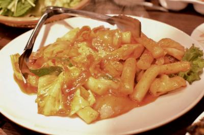 飲み放題が付いて、サムギョプサル、チャプチェ、トッポギ、チヂミ、スンドゥブチゲと食べきれない量でした。