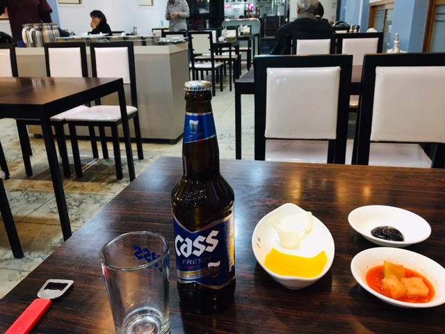 かなりの高級店風の外観と内装で、料理も一品一品ややお高めです。そんな中で、「海鮮焼きうどん」は10,000ウォンでリーズナブル。大半のお客さんはこれを注文していました。