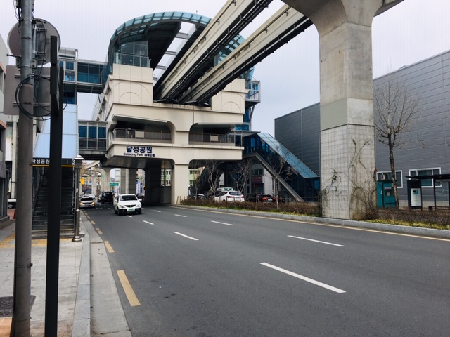 大邱都市鉄道3号線で、「西門市場」駅の1つ北側の駅です。3号線はモノレール型の高架線ですので駅としての目新しさは余りありませんが、市民の憩いの場所である「達城公園」へは最寄り駅。「西門市場」駅から行くには遠いので便利な駅かと思います。