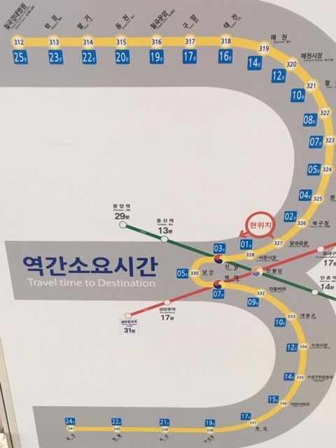 • [新名」駅は旧名で今は専ら「チョンナオンドン」駅と呼ばれます。車内放送では、日本語で「青蘿(ちょんな)の丘」とのアナウンスがありました。