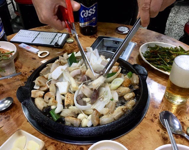 注文したのは、小腸 (ソコプチャンクイ)とミノ (ヤンクイ)のセット。合計36000ウォン。
