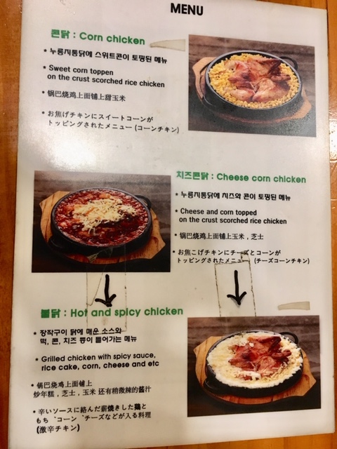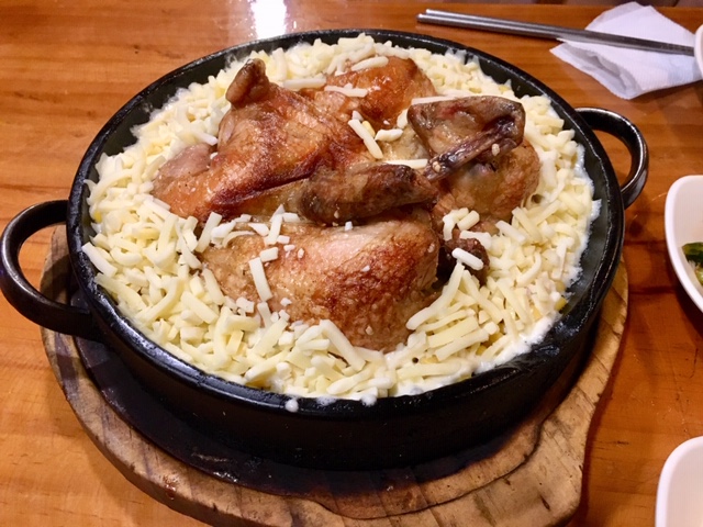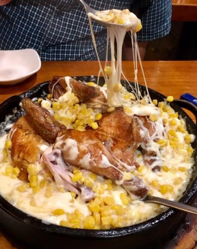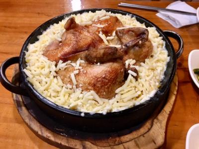 注文したのは「チーズコーン入り鶏丸焼き・おこげ付き」22,000ウォン。