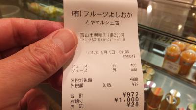 100%生果汁ジュース、2杯で1000円でお釣りが来ます。