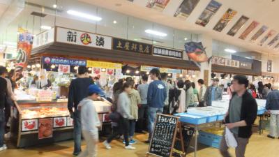 魚の種類も多く、見るだけでも楽しめますが、実は13:00から近くで紅ズワイガニの「昼セリ」が行なわれていて、13:30頃には競り落とされたばかりの紅ズワイを釜茹でにしてすぐに販売しています。我々は昼食を取ってしまいましたが、通は、これを食べに来ているようです。- 旅行時期