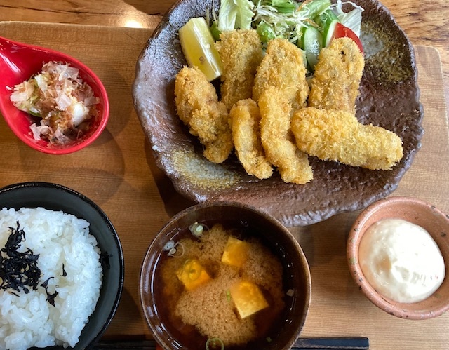 お勧めはなんといっても「牡蠣フライ定食です」(1300円)。鳥羽名産の浦村カキを使ったプリプリ・サクサクの最高の牡蠣フライでした。その他、カキのペペロンチーノや松阪牛のハンバーグなどの魅力的なメニューもあります。- 旅行時期