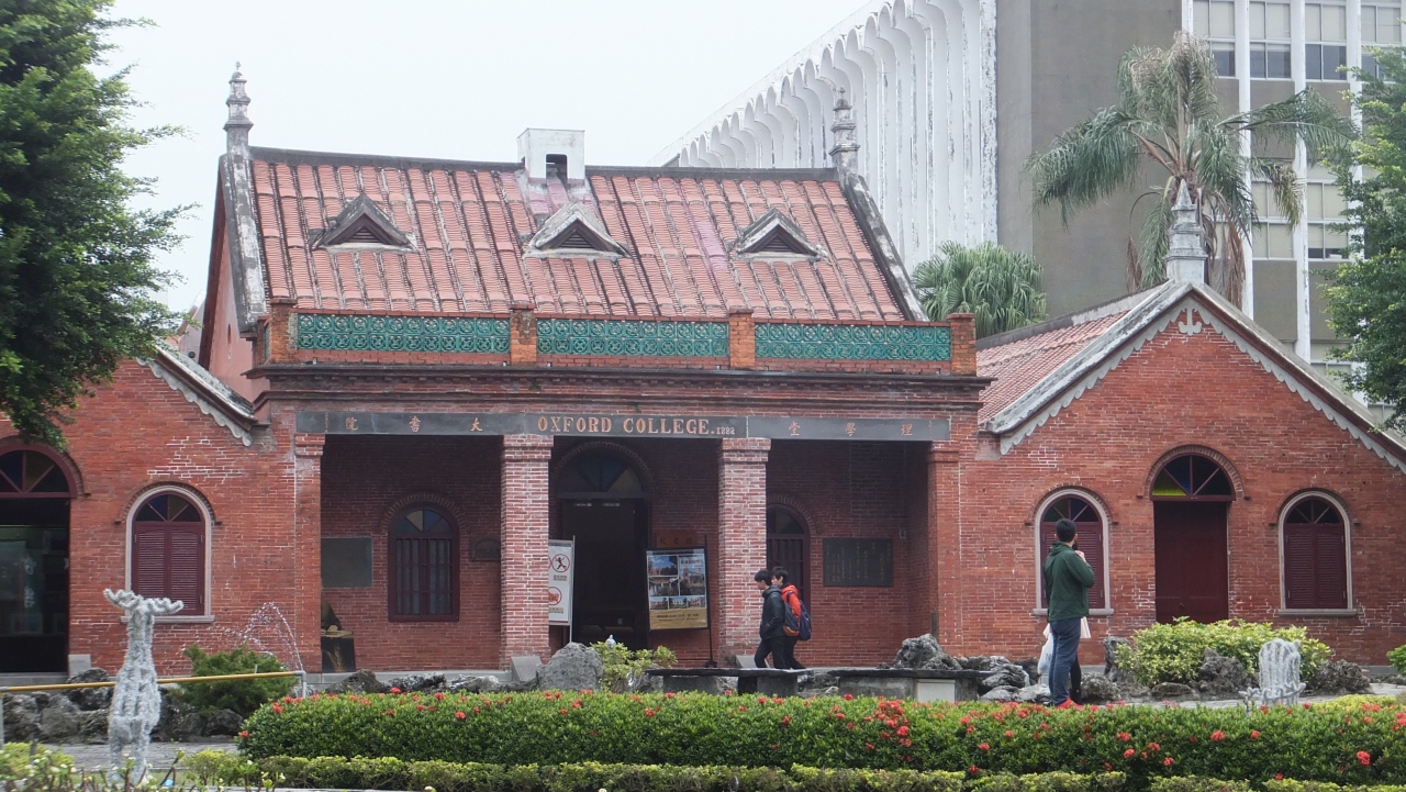 淡水を代表する史跡の「紅毛城」の前の急な坂道を登った先に大学キャンパスがあります。構内に、小さなレンガ造りの建物がありますがこれが「牛津学堂(理学堂大書院)」で、カナダ出身の宣教師であり、教育者でもあったジョージ・レスリー・マッカイ博士が1880年に設立した、台湾初の西洋教育の学校です。
