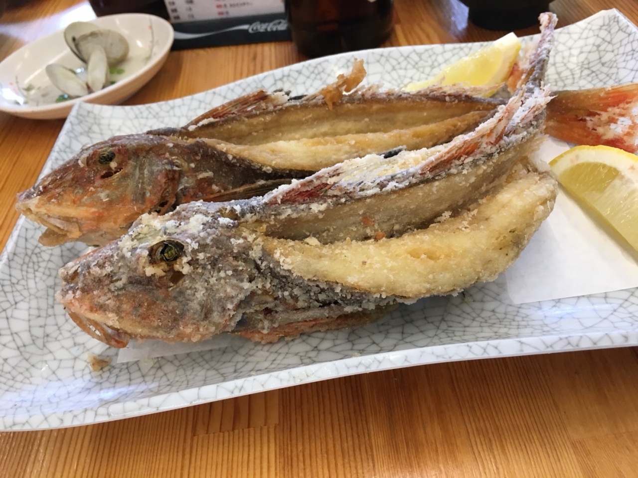 何を食べても新鮮でおいしいですし、コスパもいいです。この日は漁師の天然地魚丼、イカゲソの唐揚げ、「ホンビノス貝」の酒蒸し、ホウボウの唐揚げをいただきました。