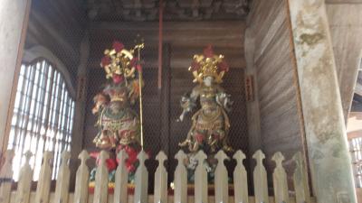 建物自体は、けやき造りの唐風の楼門で、二重層になっています。両側に は仏教の守護神である四天王が安置されています