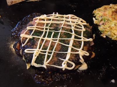 夫婦2人で、「超得豚玉」「道とん堀ミックス」を注文。若い人はメガ盛りや食べ放題メニューがありますが、老境の域に入りつつある我々は、1人一枚が精一杯。