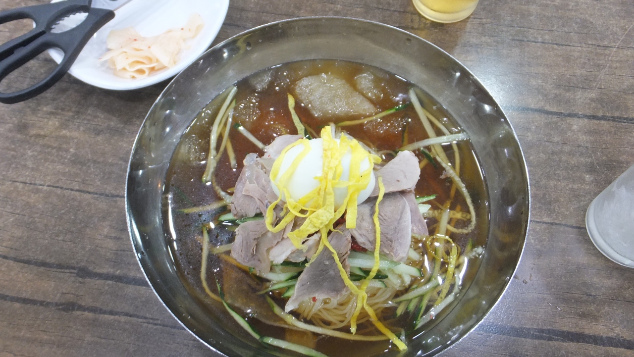 これを混ぜて食べます。さっぱりとした中にも牛肉の出汁のコクがあって、これまで食べたどの冷麺よりも美味かった。- 旅行時期