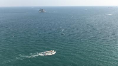 展望台から日本海が見え、晴れて澄んだ日には海の向こう56kmにある日本の対馬が見えるそうですが、霞みがかかっていて見えませんでした。