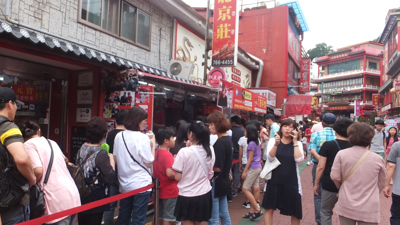 チャイナタウンの中でも一番人が多く賑わっている通りです。韓国式ジャージャー麺「チャジャンミョン」発祥の街のメインストリート。