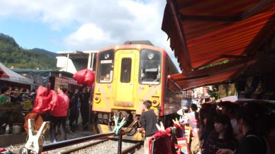 線路を両脇の店ギリギリに通る平渓線も楽しめました。- 旅行時期