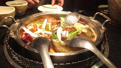 スープは4種類ありますが、「馬辣麻辣鍋」(辛いスープ)と「東北酸菜鍋」(酸味のある白菜スープ)を選びました。
