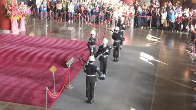 毎正時に孫文のブロンズ像の前で衛兵の交代式が行われます。