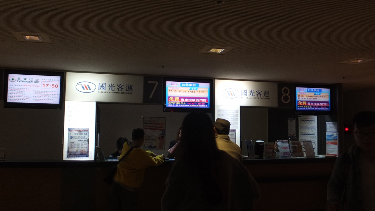 国光客運バスは、台北から台湾各地にバス便を運行していますが、主に中距離便はこのA棟から発着します。