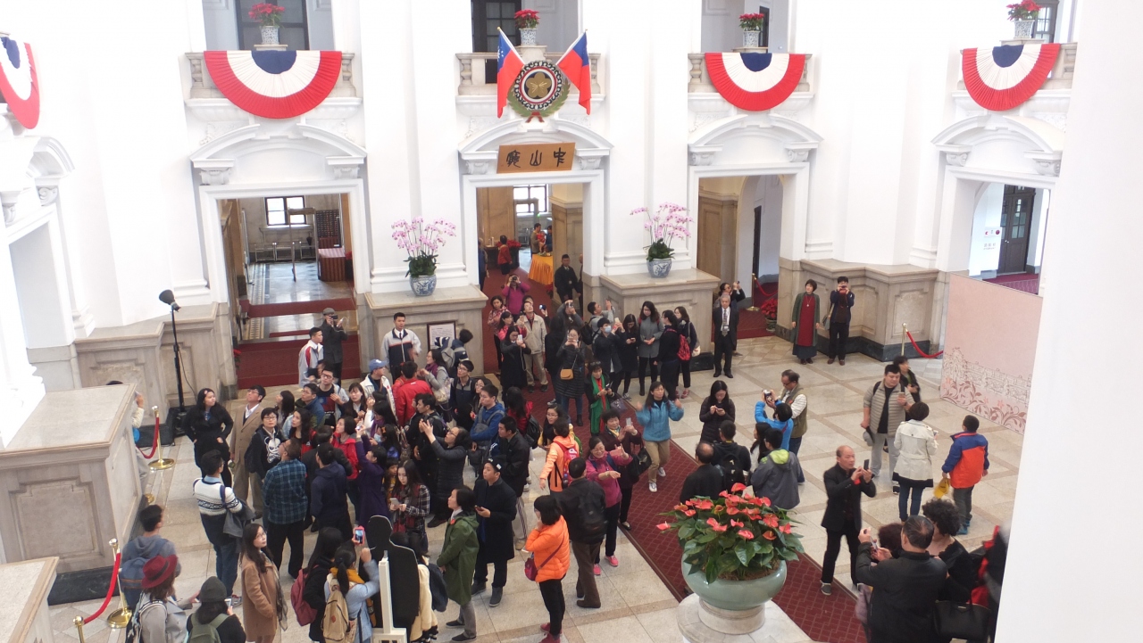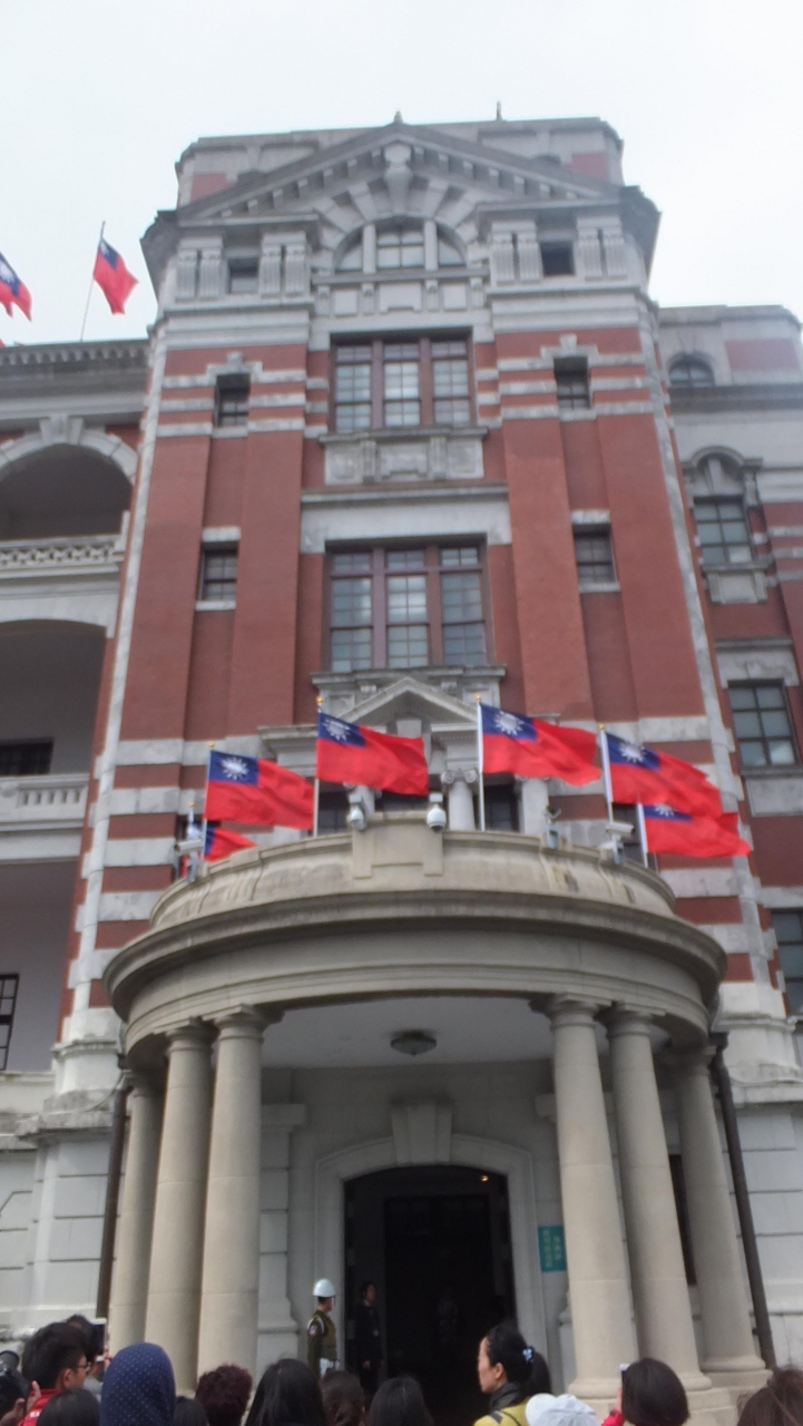 総統府見学は、正面入口ではなく、宝慶路と博愛路の交差点の所にある入口から入場します。旧正月を祝う台湾ですが、元旦だけは国民の祝日なので、大行列で、列に並んでから入場するまで70分ほど掛かりました。