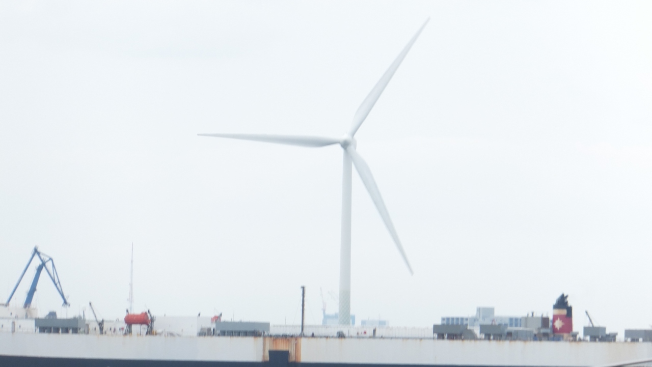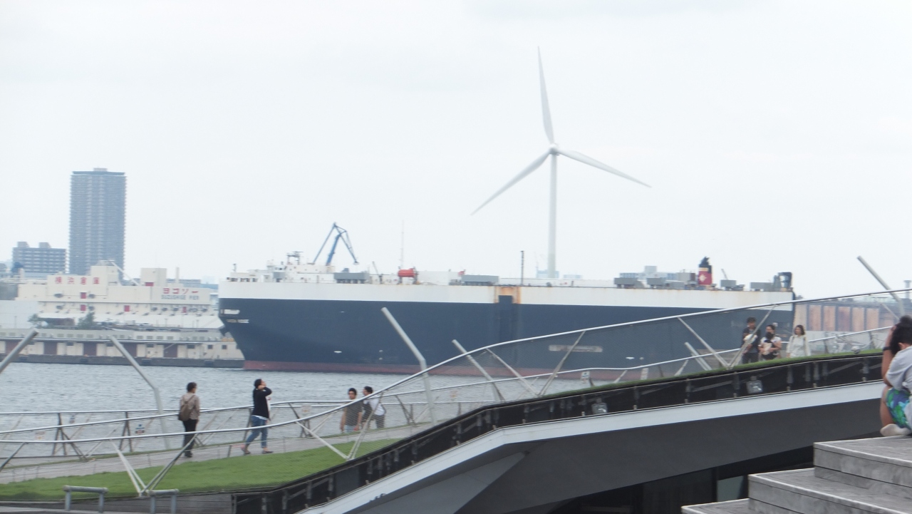 大桟橋から海の方を見渡すと、風車が優雅に回っていました。