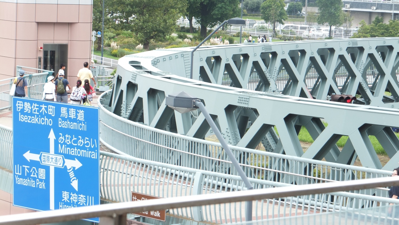 国際大通りと万国橋通りの交差点に架けられた楕円形の歩道橋で、橋長は、約225?もあります。「汽車道」から続く開港の道プロムナードのルートの一つで、この橋を渡れば赤レンガパークにいくことが出来ます。