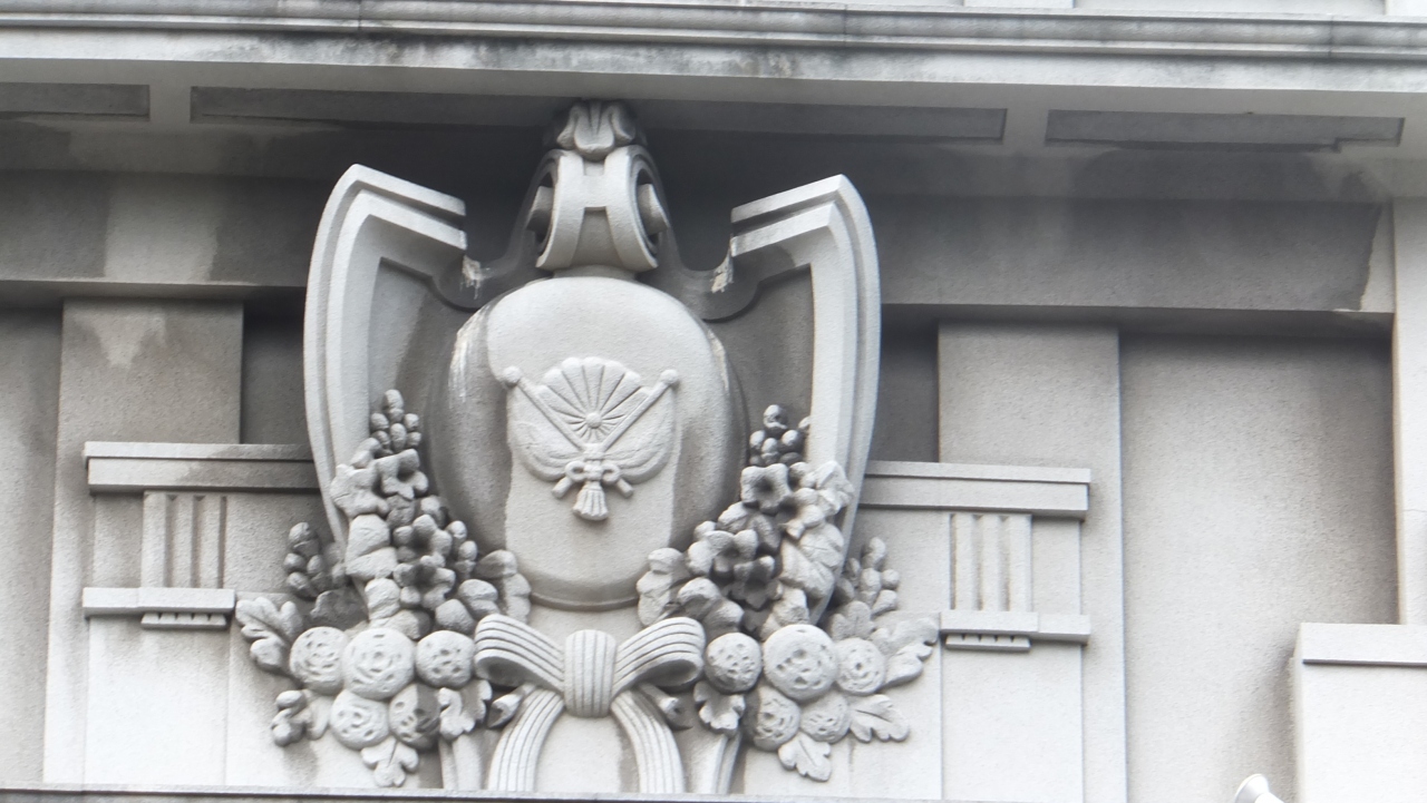 正面上部の彫刻は、蚕の成虫と菊の紋と桑の葉をあしらった紋章の入ったエンブレムで、赤レンガとも相まって美しい。- 旅行時期