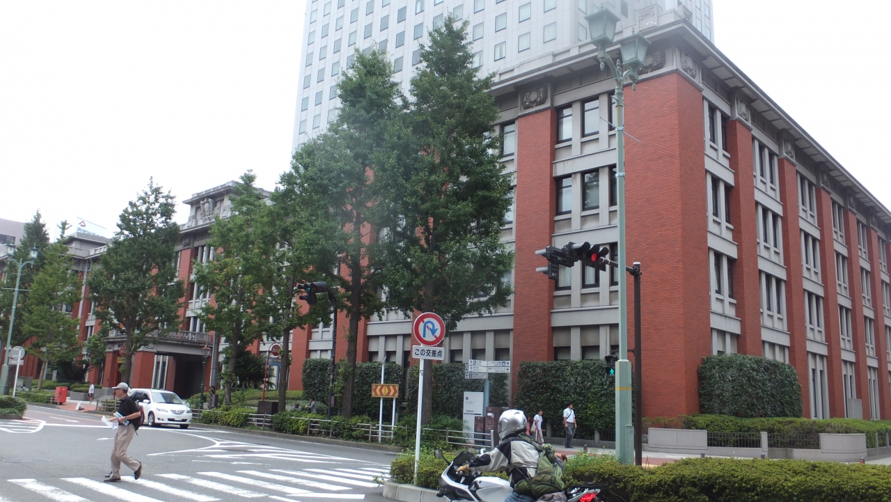 「横浜第2合同庁舎」ということで現役の施設ですが、前の低層階の赤レンガの建物は、旧・横浜生糸検査所で、1926年に竣工され、横浜市認定歴史的建造物に認定されています。すぐ後ろには、23階建ての建物があります。