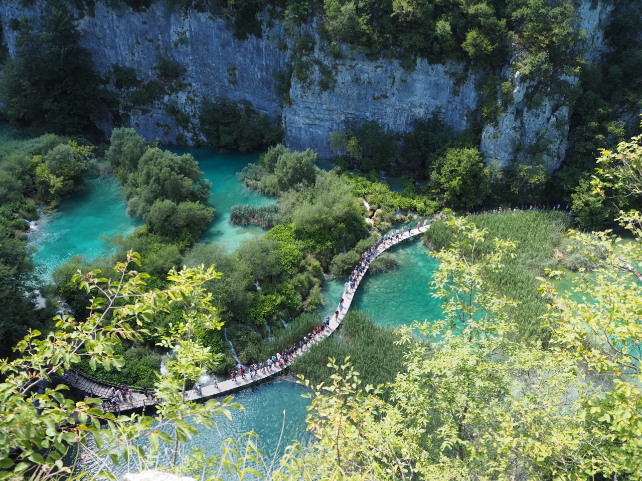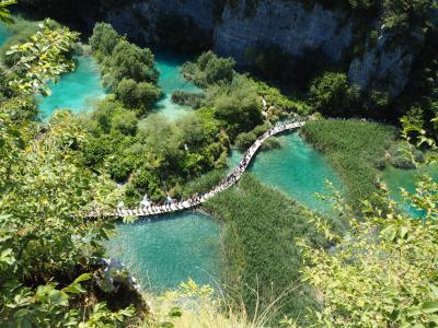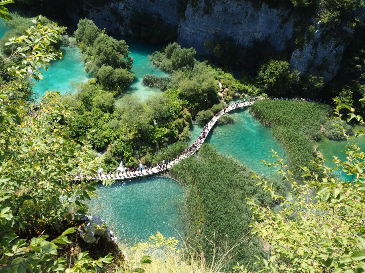 ガイドブックに載ってるプリトヴィッツェ湖群国立公園の写真と言えば、高いところから湖に浮かぶS字のトレイルを写した写真。