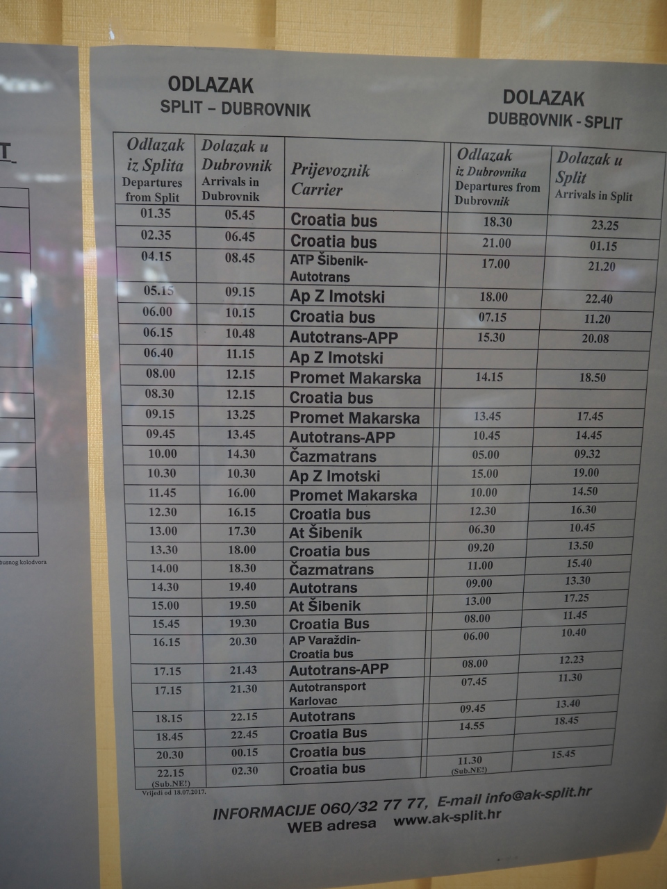 ・2日にバスターミナルに行き、窓口で購入しました。1人25kn。
