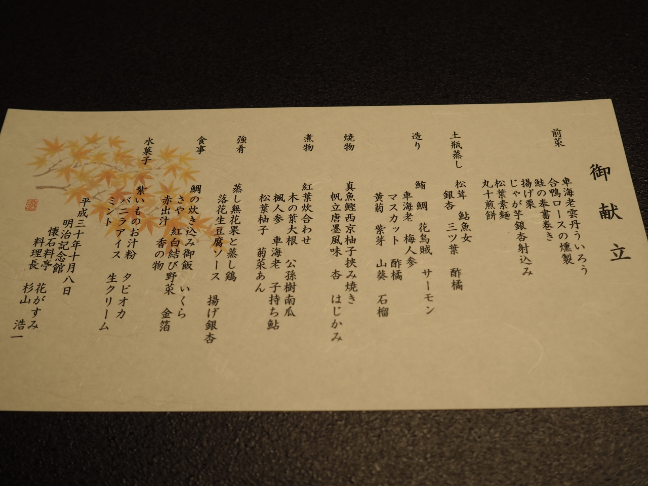 行った日がたまたま年に数回開催されている「花がすみ会」の日だったので、ランチは「錦秋の膳」一択でした。