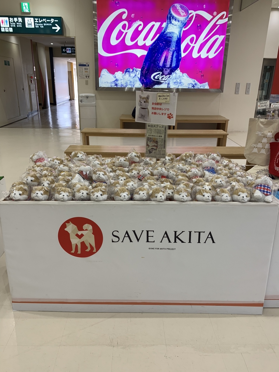 県内には秋田犬と名の付くぬいぐるみが数多くあれど、空港で売ってるこの子達が一番かわいいお顔をしていると思います。旅の思い出にお一ついかがでしょうか。