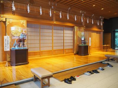 場所は神楽殿。祝日の15時過ぎの到着で申し込みをしたところ、16時の回になりました。一緒に祈祷される人たちは10組もおらず、意外なほどゆったりと時間を過ごせました。